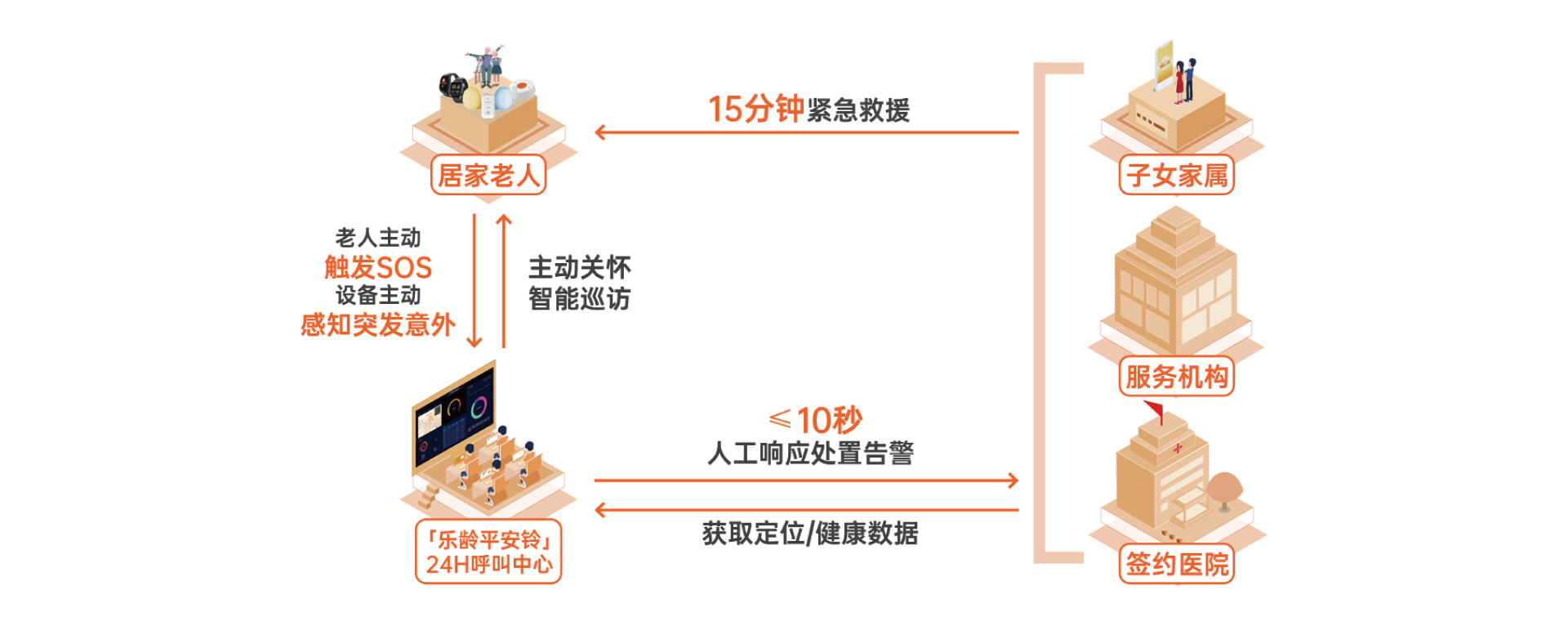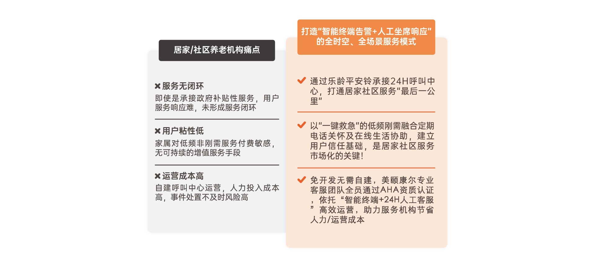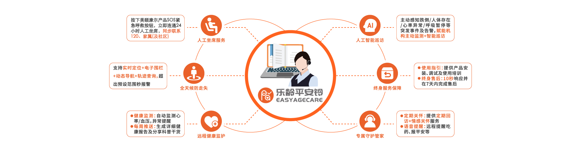 为了将老年人刚需及特需服务精准延伸至每个养老家庭,美颐康尔正式推出全新服务品牌“乐龄平安铃”,以24小时人工值守呼叫中心为服务枢纽,整合自研适老化智能终端与数字化运营管理平台,助力服务机构从全天紧急救援刚需服务切入,带动生活关怀服务付费增长,覆盖老人居家生活全场景,形成“线上+线下”服务闭环,探索高价值、可持续的市场化运营模式。